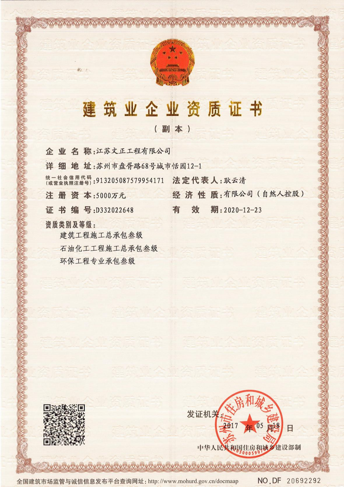 建筑企業(yè)資質(zhì)證書