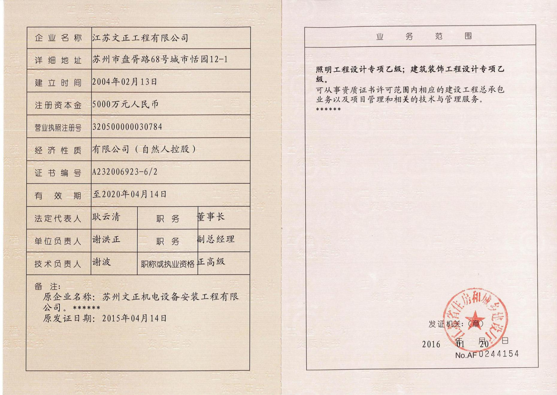 照明/建筑裝飾工程設(shè)計專項乙級