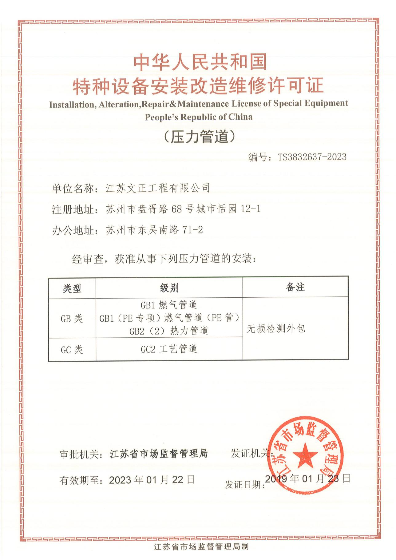 特種設(shè)備安裝改造維修許可證