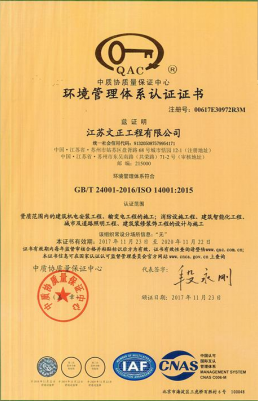 環(huán)境管理體系認證證書